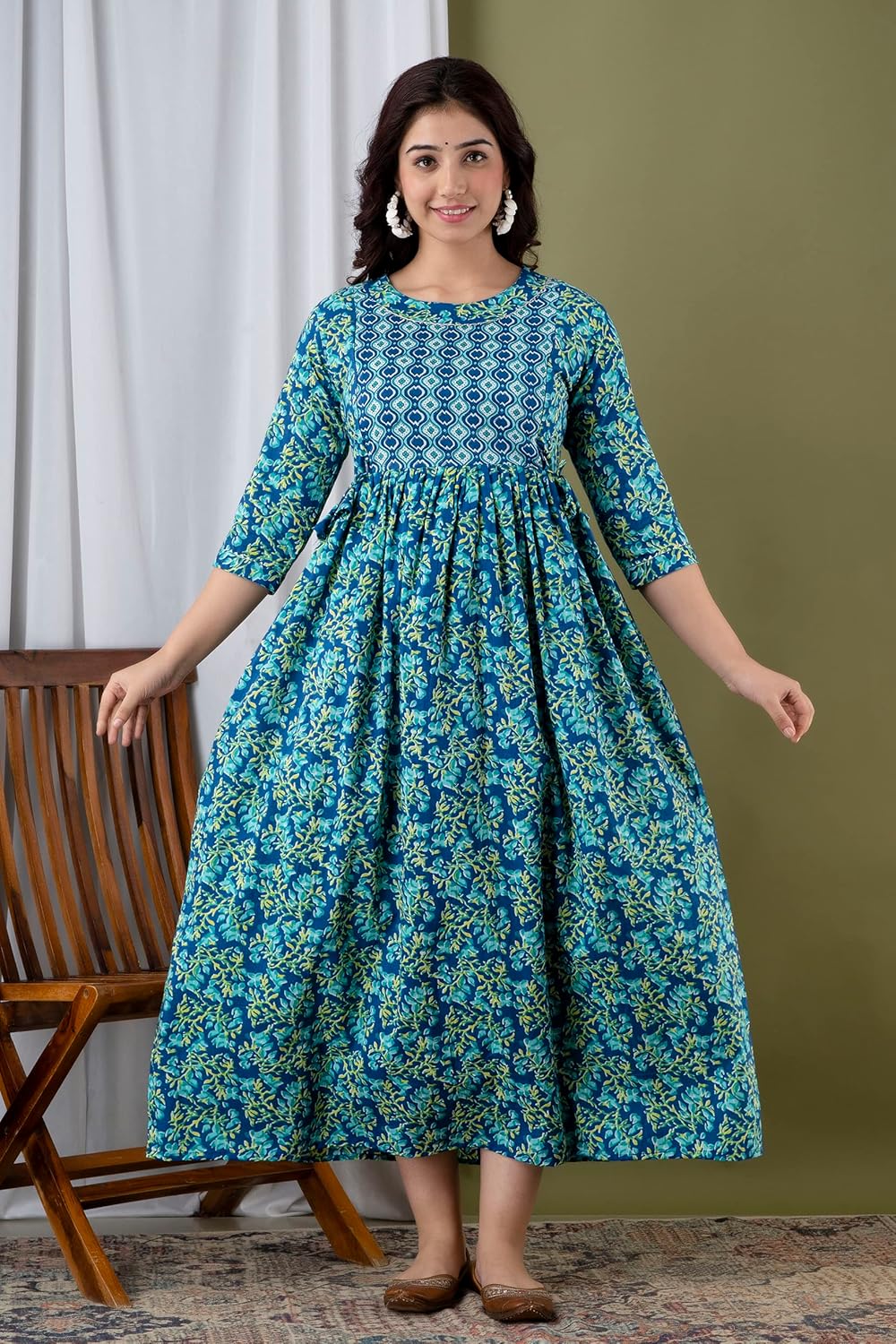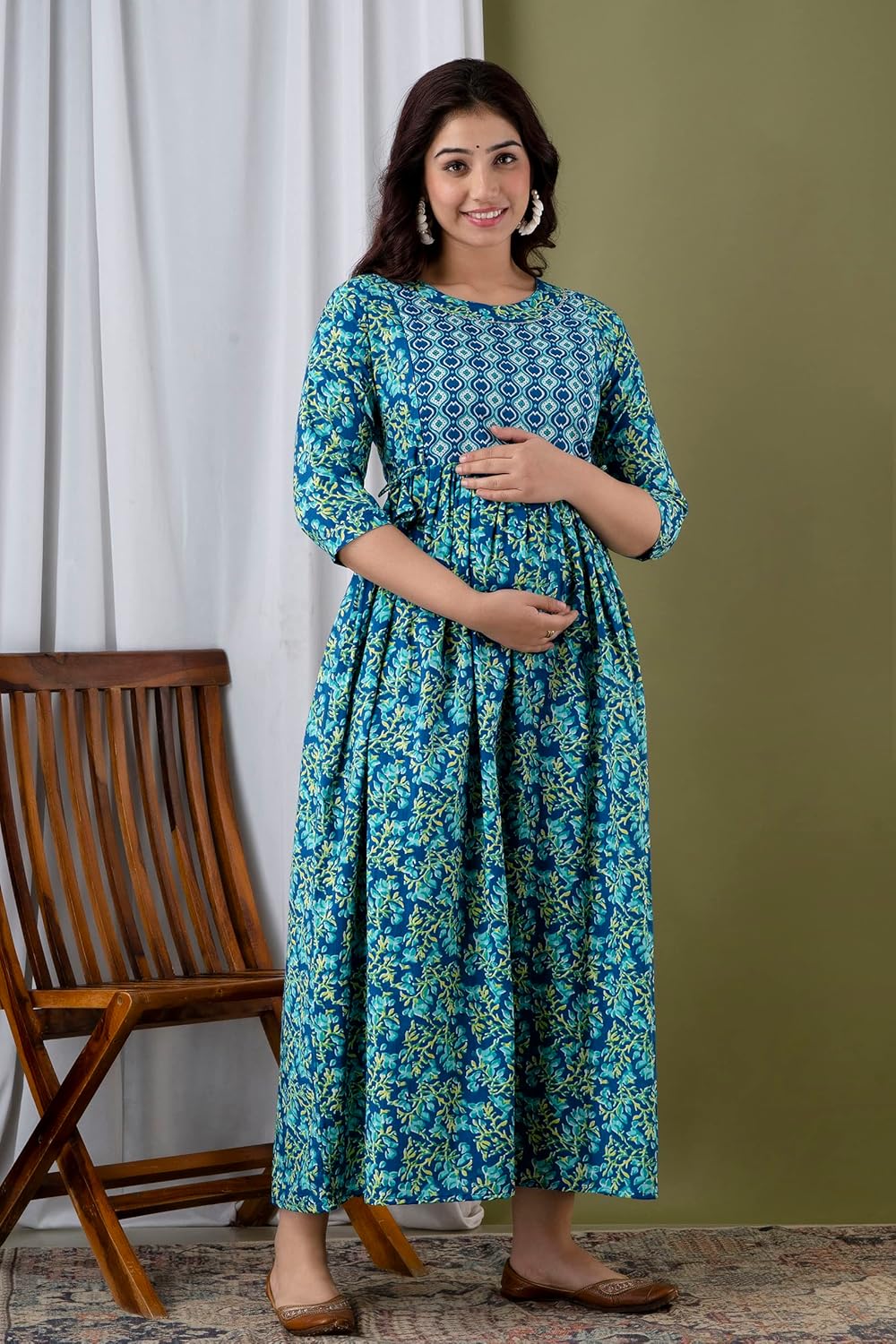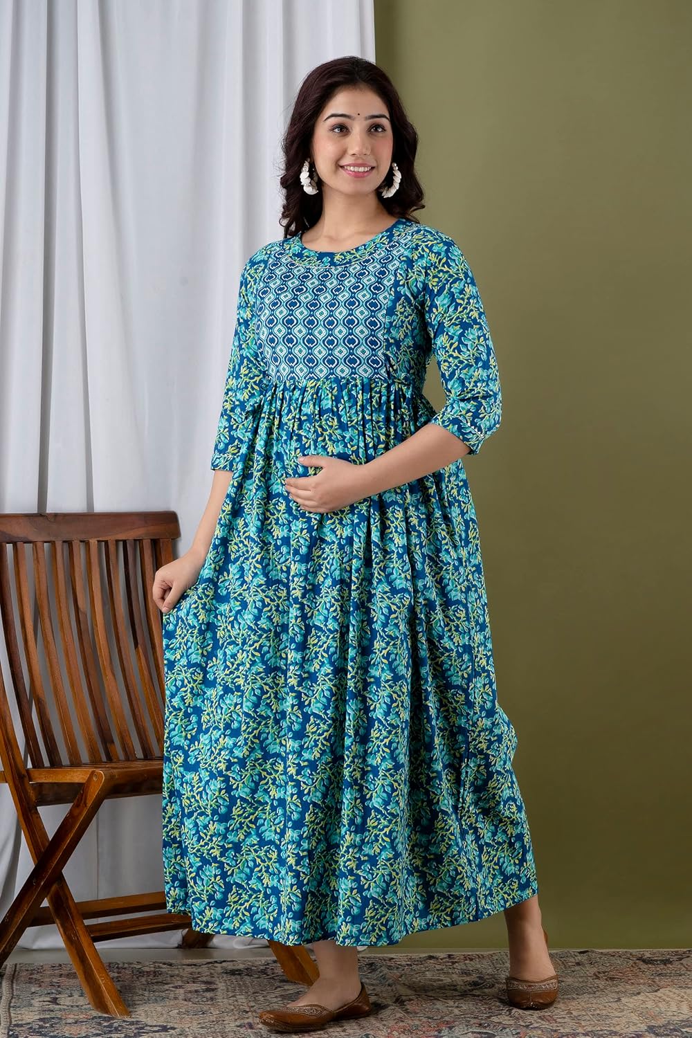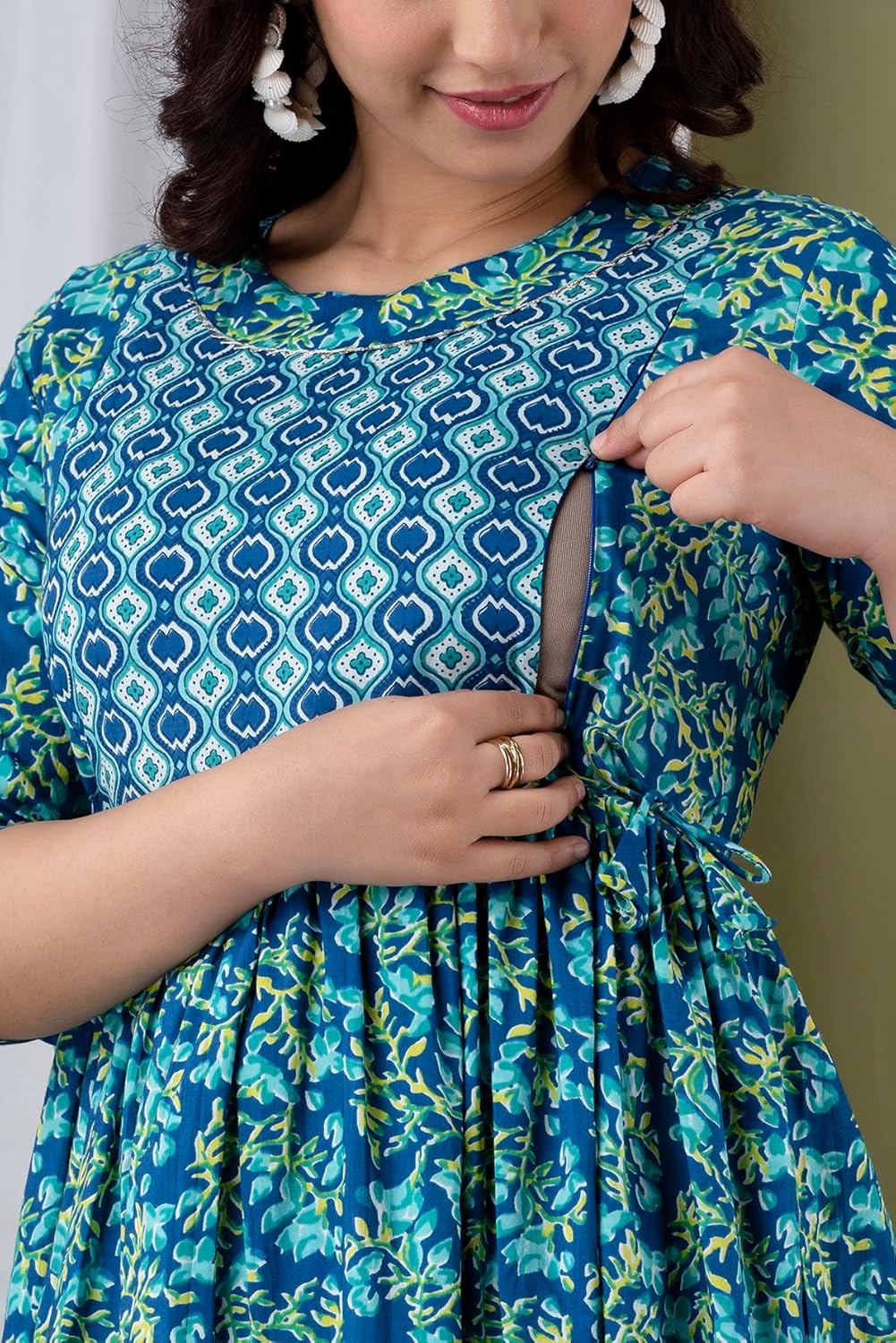 Water Blue - JAIPURFAME Maternity Feeding Kurti with Zipper | Cotton Floral Printed Pregnancy & Nursing Dress | Comfortable & Stylish Maternity Wear for Women | Breastfeeding Kurta with Zipper | Soft & Elegant
