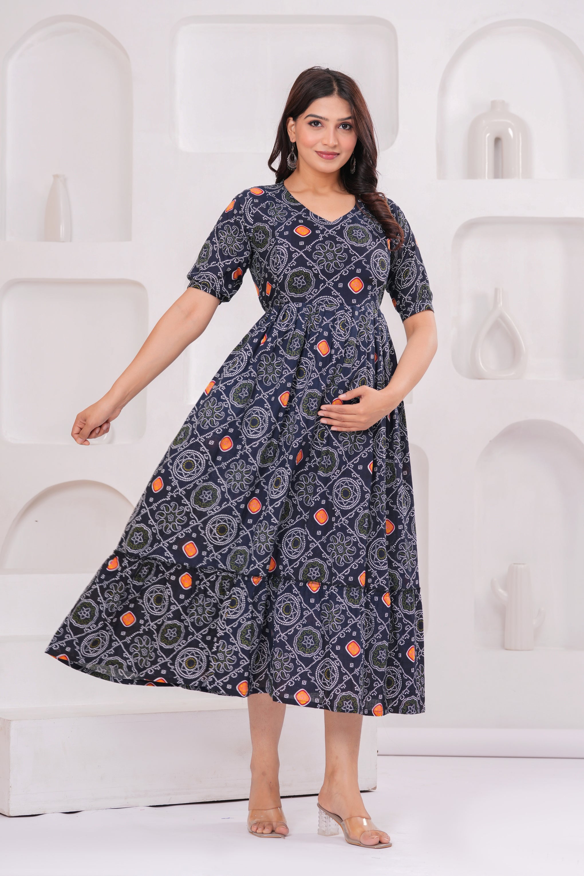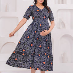 "Black Chunry Printed Cotton Maternity Anarkali Kurta – Comfortable & Stylish Ethnic Wear for Moms-to-Be"