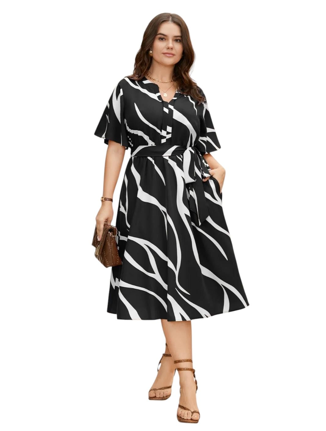 Featuring a unique print and a flattering silhouette, this dress is a versatile addition to your wardrobe.
