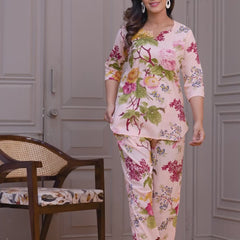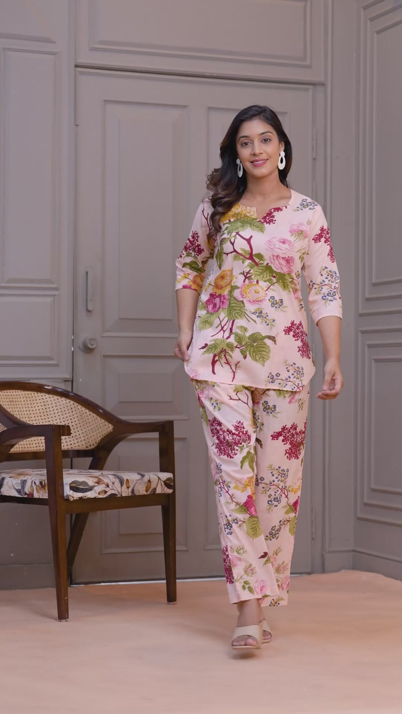 Elegant Floral Co-Ord Set in Soft Blush
