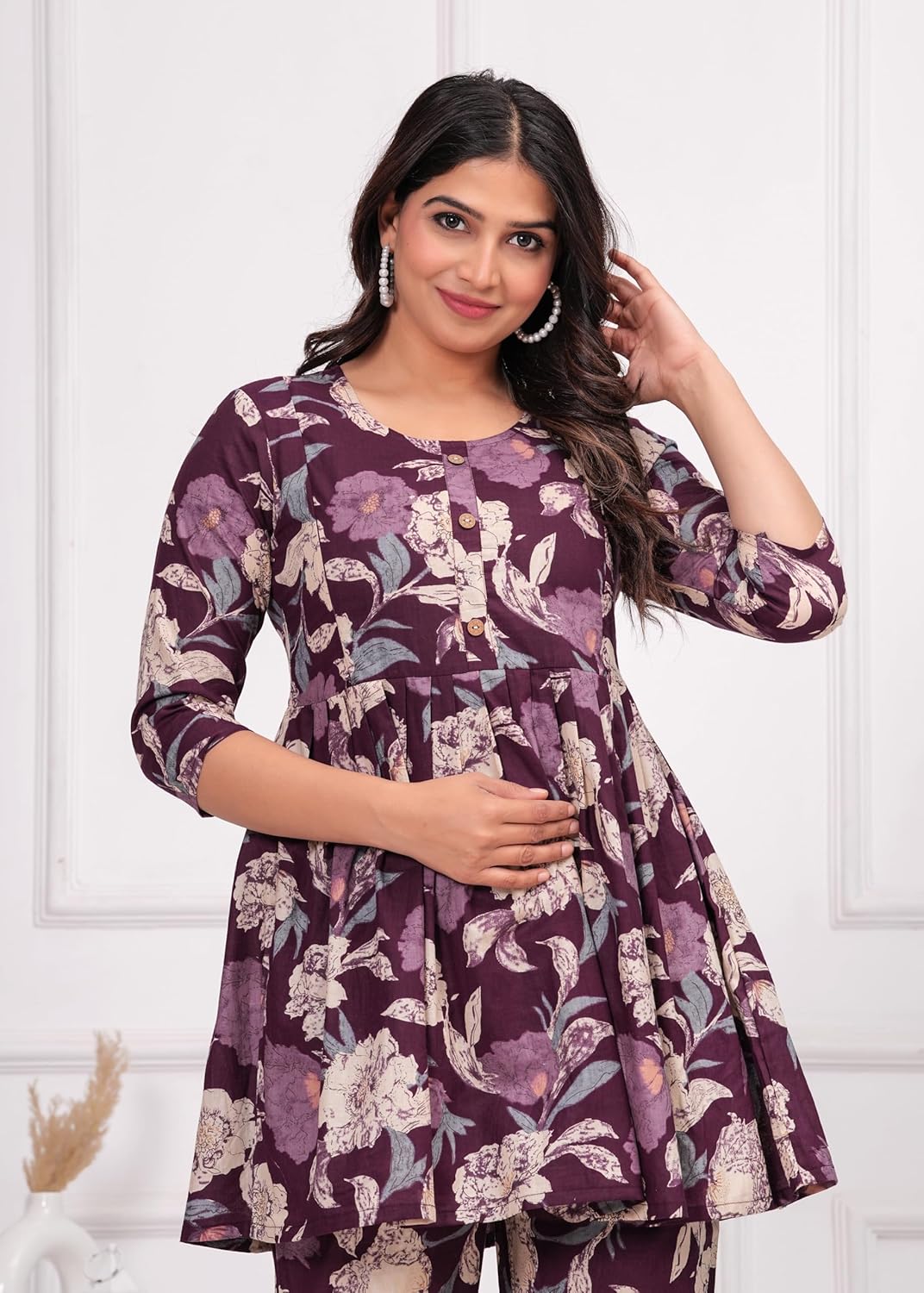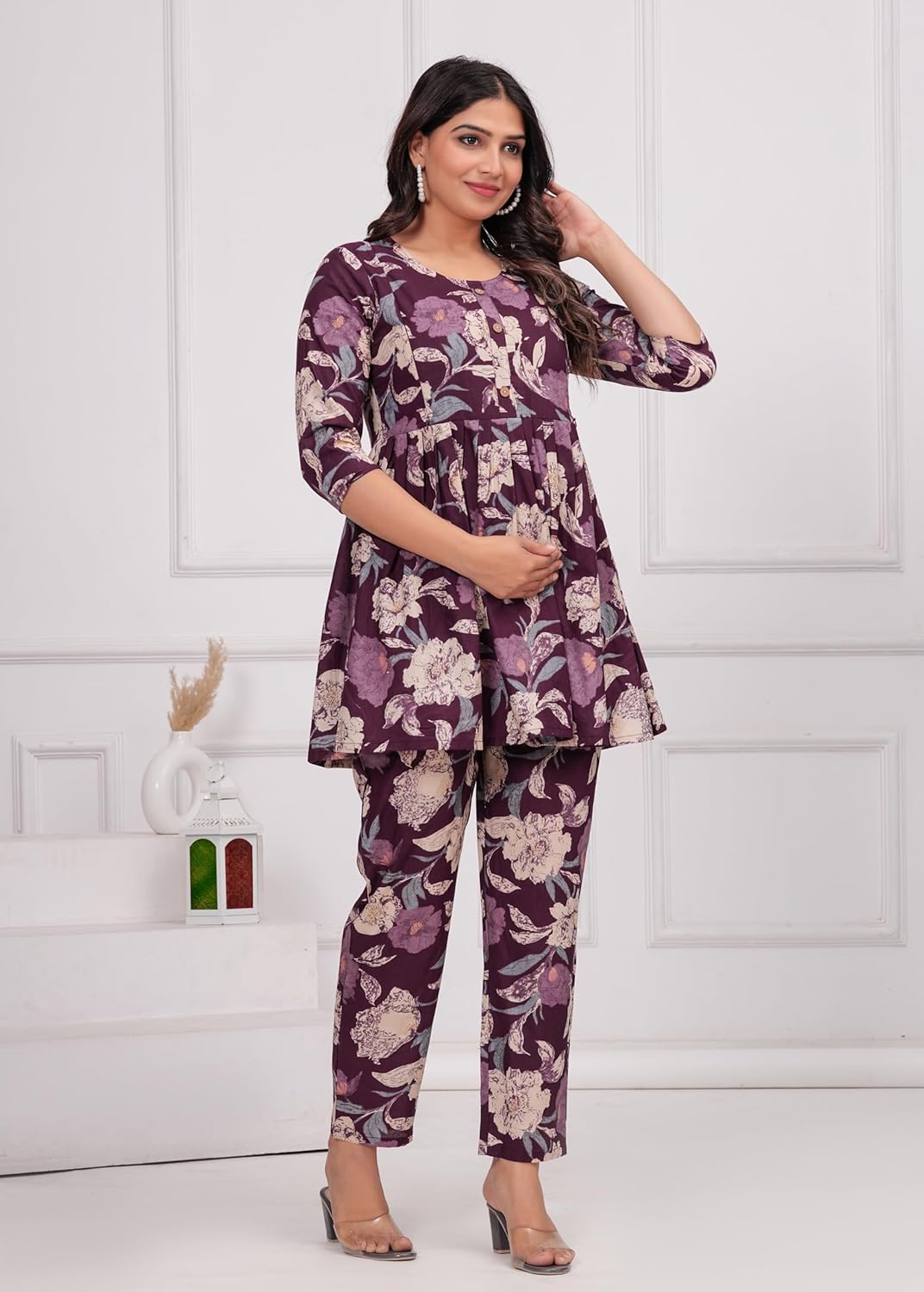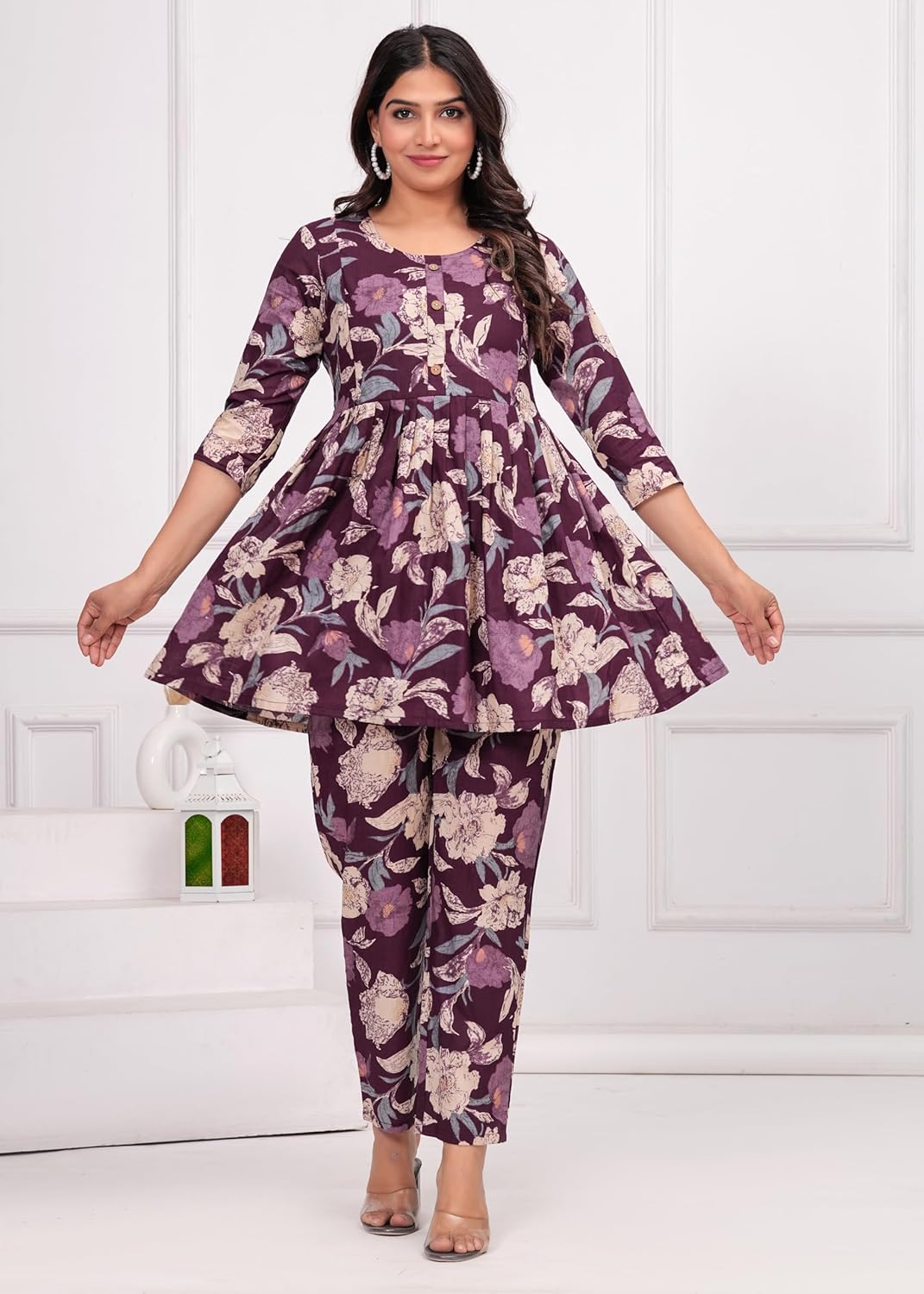 PURPLE - JAIPURFAME Women’s Floral Printed Cotton Co-Set – Comfortable & Stylish Two-Piece Outfit in Perfect for Casual Wear, Vacation, or Everyday Style