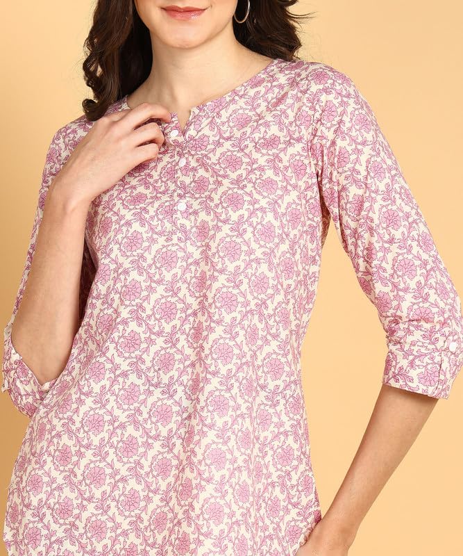 Add timeless elegance to your wardrobe with this beautifully crafted floral printed cotton top. Designed for comfort and versatility, it features a Mandarin collar and a long, flattering silhouette that transitions seamlessly from casual to semi-formal wear. Whether you're heading to the office, meeting friends, or simply enjoying a relaxed day out, this top is your go-to choice for effortless style.