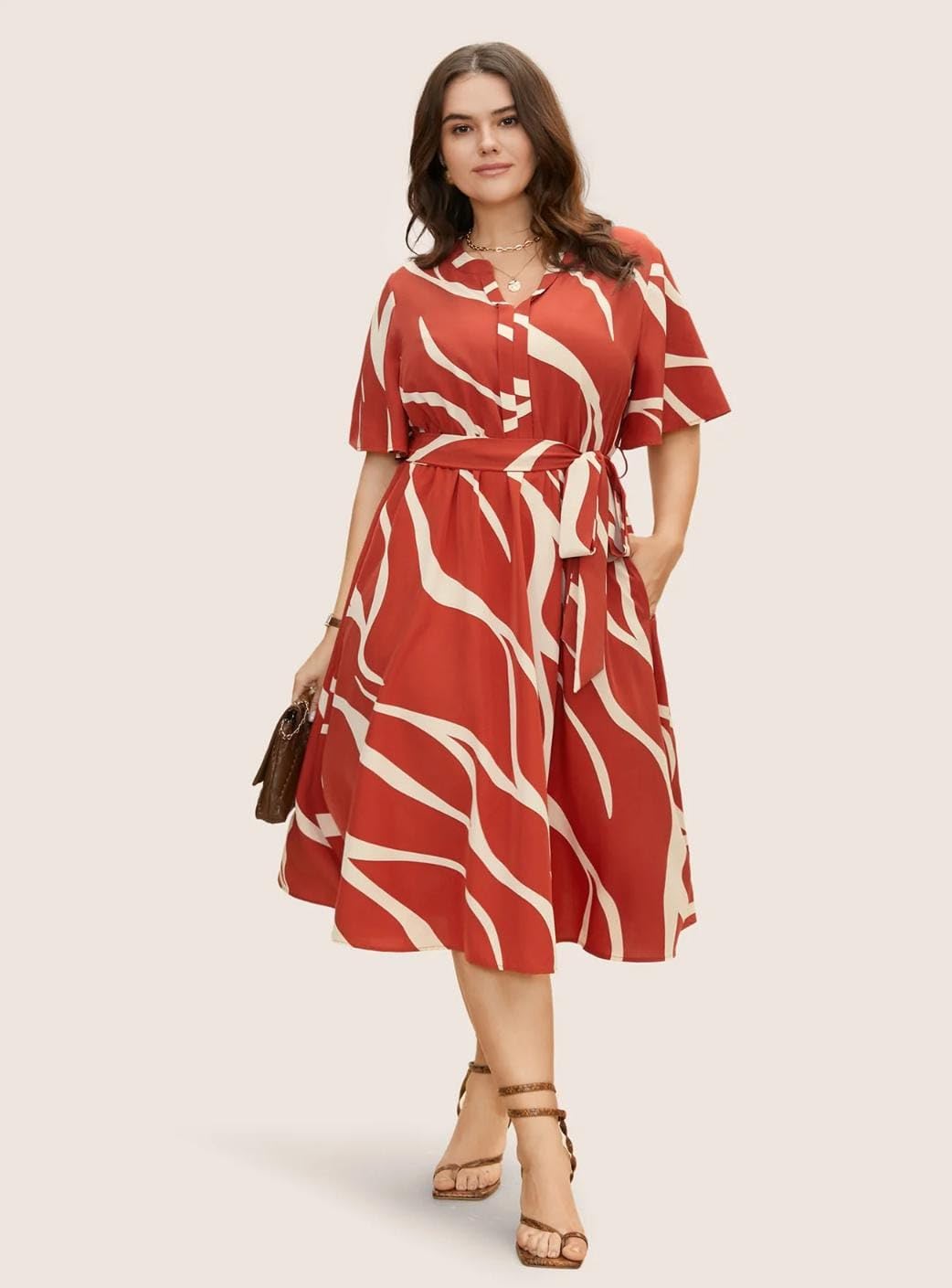 Featuring a unique print and a flattering silhouette, this dress is a versatile addition to your wardrobe.