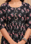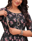 BLACK - JAIPURFAME Women's Stylish Pure Cotton Printed Kurti Gown – Comfortable and Elegant Maternity & Feeding Dress for Women