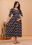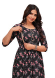 Black Pink Floral - Maternity Feeding Kurti with Zipper | Cotton Floral Printed Pregnancy & Nursing Dress | Comfortable Maternity Wear for Women | Breastfeeding Kurta Set with Zip | Stylish & Soft