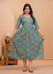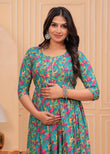 BLUE - Women's Stylish Pure Cotton Printed Kurti Gown – Comfortable and Elegant Maternity & Feeding Dress for Women