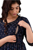 Dark Blue - JAIPURFAME Maternity Feeding Kurti with Zipper | Cotton Floral Printed Pregnancy & Nursing Dress | Comfortable & Stylish Maternity Wear for Women | Breastfeeding Kurta with Zipper | Soft & Elegant