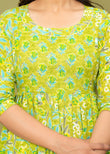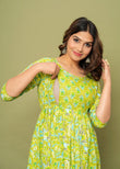 Embrace motherhood in style with this radiant lime green floral maternity and nursing dress. Crafted from soft, breathable cotton, the dress offers a vibrant floral print in refreshing hues of green, blue, and white, perfect for daytime outings or casual get-togethers.