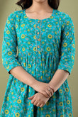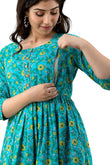 Green - Maternity Feeding Kurti with Zipper | Cotton Floral Printed Pregnancy & Nursing Dress | Comfortable & Stylish Maternity Wear for Women | Breastfeeding Kurta with Zipper | Soft & Elegant