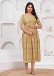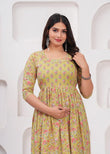 Olive Yellow - JAIPURFAME Maternity Feeding Kurti with Zipper | Cotton Floral Printed Pregnancy & Nursing Dress | Comfortable & Stylish Maternity Wear for Women | Breastfeeding Kurta with Zipper | Soft & Elegant