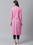 Pink - Women's Rayon Kurta | Elegant Rust Stripe Collar-Neck Kurta | Perfect Blend of Comfort & Style | Suitable for Party & Casual Wear
