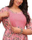 PINK - Women's Stylish Pure Cotton Printed Kurti Gown – Comfortable and Elegant Maternity & Feeding Dress for Women